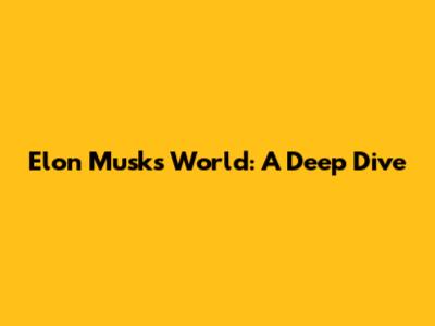 Elon Musk's World: A Deep Dive