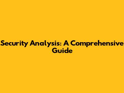 Security Analysis: A Comprehensive Guide