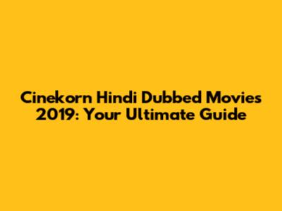 Cinekorn Hindi Dubbed Movies 2019: Your Ultimate Guide