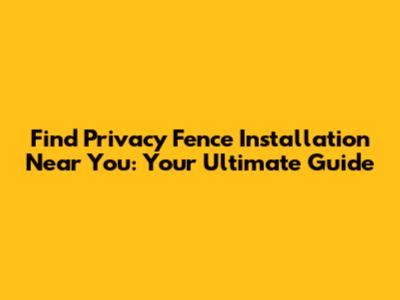 Find Privacy Fence Installation Near You: Your Ultimate Guide