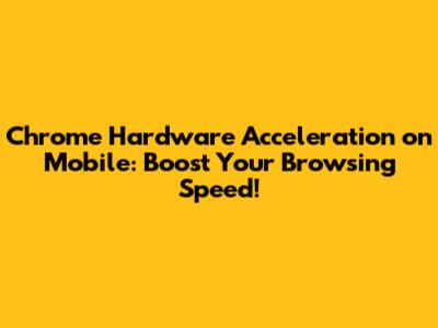 Hey guys, ever feel like your Chrome browser on your phone is chugging along slower than molasses in January? You're not alone! We've all been there, waiting for that webpage to load, watching that video stutter, or trying to scroll through a busy site only to have it freeze up. It's super frustrating, right? Well, today we're diving deep into a game-changer that can seriously speed things up: Chrome hardware acceleration on mobile. This isn't some super-technical mumbo jumbo; it's a feature built right into your browser that leverages your phone's hardware to do the heavy lifting for graphics and rendering. Think of it like giving your phone's engine a turbo boost! By enabling this, you're essentially telling Chrome, "Hey, stop making my phone's CPU do all the work, use that fancy GPU you've got!" This can lead to smoother scrolling, faster page loads, and a generally snappier browsing experience. So, if you're looking to unlock the full potential of your mobile browsing and leave those loading spinners in the dust, stick around as we break down exactly what hardware acceleration is, why it matters for your mobile device, and how you can easily enable it to get that sweet, sweet speed boost. Let's get this browsing party started!