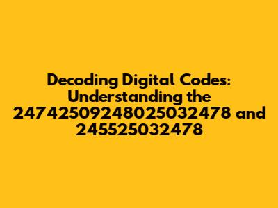 First off, identifiers are a likely candidate. In databases, applications, and systems, unique identifiers are assigned to various elements such as users, objects, or transactions. The long sequence of 24742509248025032478 could be a unique ID. It could be for a specific user account, a product in an inventory system, or even a record in a financial transaction database. On the other hand, the shorter number 245525032478 could be a related identifier, perhaps a simpler form of the same ID or a reference to a parent object.