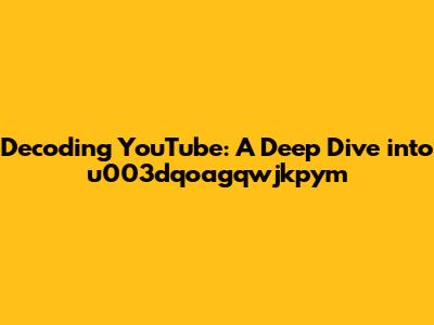 Decoding YouTube: A Deep Dive Into U003dqoagqwjkpym