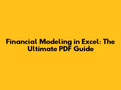 Financial Modeling In Excel: The Ultimate PDF Guide
