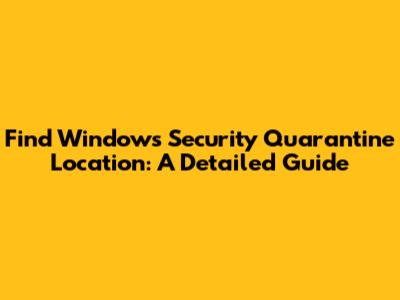 Find Windows Security Quarantine Location: A Detailed Guide