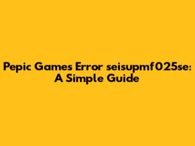 Fix Pepic Games Error Seisupmf025se: A Simple Guide