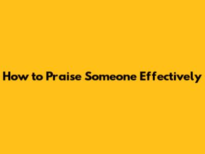 How To Praise Someone Effectively