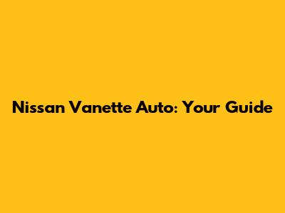 Nissan Vanette Auto: Your Guide
