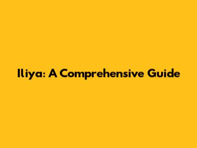 Iliya: A Comprehensive Guide