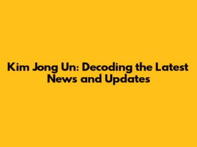 Kim Jong Un: Latest Developments And Updates