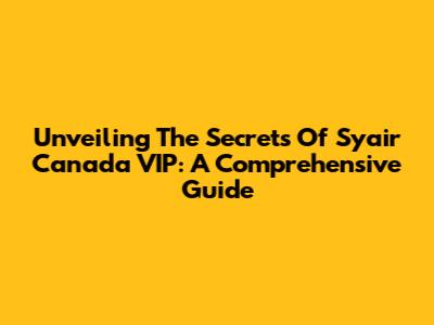 Unveiling The Secrets Of Syair Canada VIP: A Comprehensive Guide