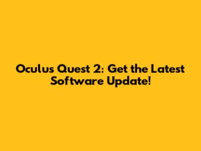 Oculus Quest 2: Get The Latest Software Update!