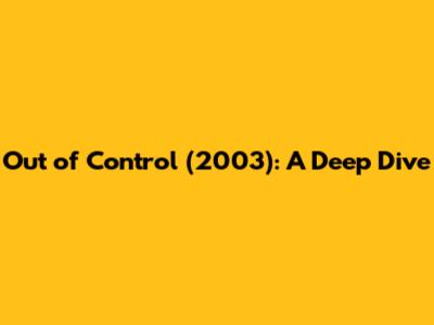 Out Of Control (2003): A Deep Dive