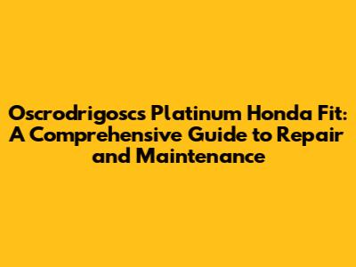 Hey everyone! Ever wondered about keeping your Platinum Honda Fit in tip-top shape? Well, you've come to the right place! We're diving deep into the world of Oscrodrigosc's Platinum Honda Fit, covering everything from basic maintenance to more complex repairs. This isn't just a guide; it's your go-to resource for ensuring your ride stays smooth, reliable, and looking its best. Whether you're a seasoned car enthusiast or just starting out, this article will equip you with the knowledge you need. Let's get started, guys!