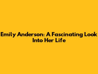 Emily Anderson: A Fascinating Look Into Her Life