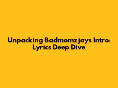 Unpacking Badmomzjay's Intro: Lyrics Deep Dive