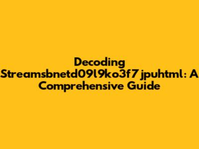 Decoding Streamsbnetd09l9ko3f7jpuhtml: A Comprehensive Guide
