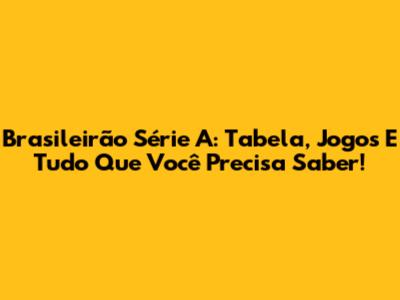 Brasileirão Série A: Tabela, Jogos E Tudo Que Você Precisa Saber!