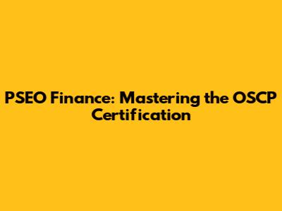 PSEO Finance: Mastering The OSCP Certification