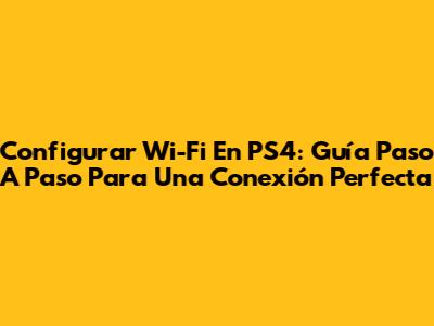 Configurar Wi-Fi En PS4: Guía Paso A Paso Para Una Conexión Perfecta