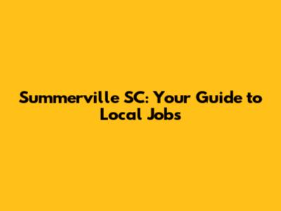 Summerville SC: Your Guide To Local Jobs
