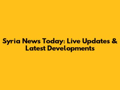 Syria News Today: Live Updates & Latest Developments
