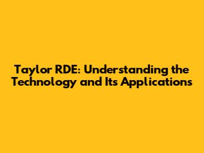 Taylor RDE: Understanding The Technology And Its Applications