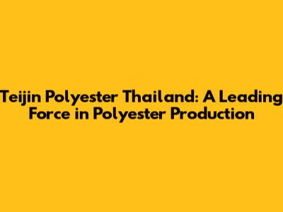 Teijin Polyester Thailand: A Leading Force