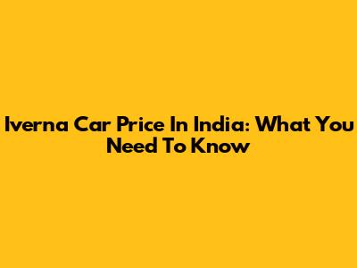 Iverna Car Price In India: What You Need To Know