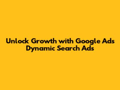 Unlock Growth With Google Ads Dynamic Search Ads