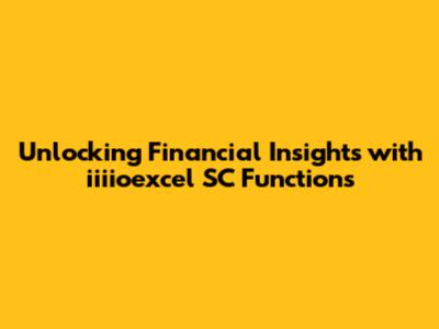 Unlocking Financial Insights With Iiiioexcel SC Functions