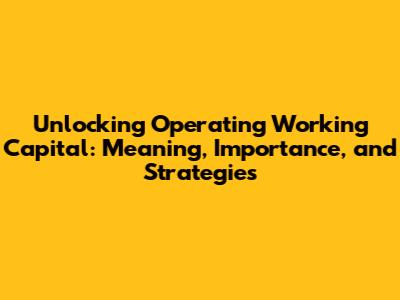 Unlocking Operating Working Capital: Meaning, Importance, And Strategies