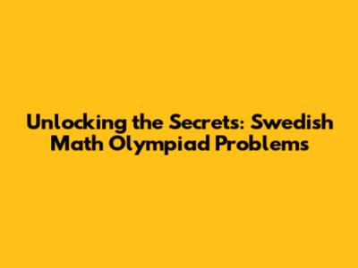 Unlocking The Secrets: Swedish Math Olympiad Problems