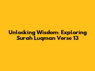 Unlocking Wisdom: Exploring Surah Luqman Verse 13