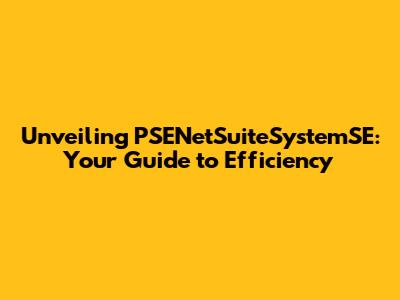 Unveiling PSENetSuiteSystemSE: Your Guide To Efficiency